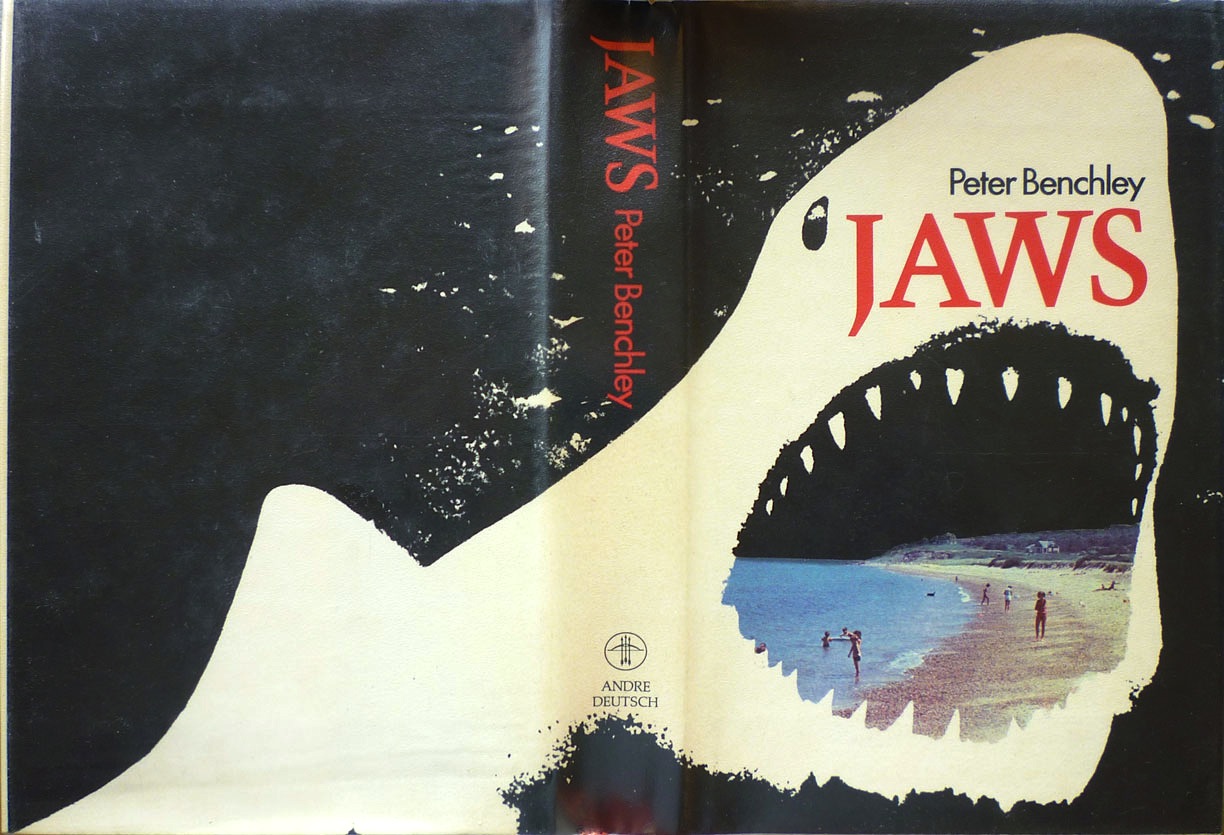 Jaws (Andre Deutsch, 1974); hardback, jacket design by Tom Simmonds